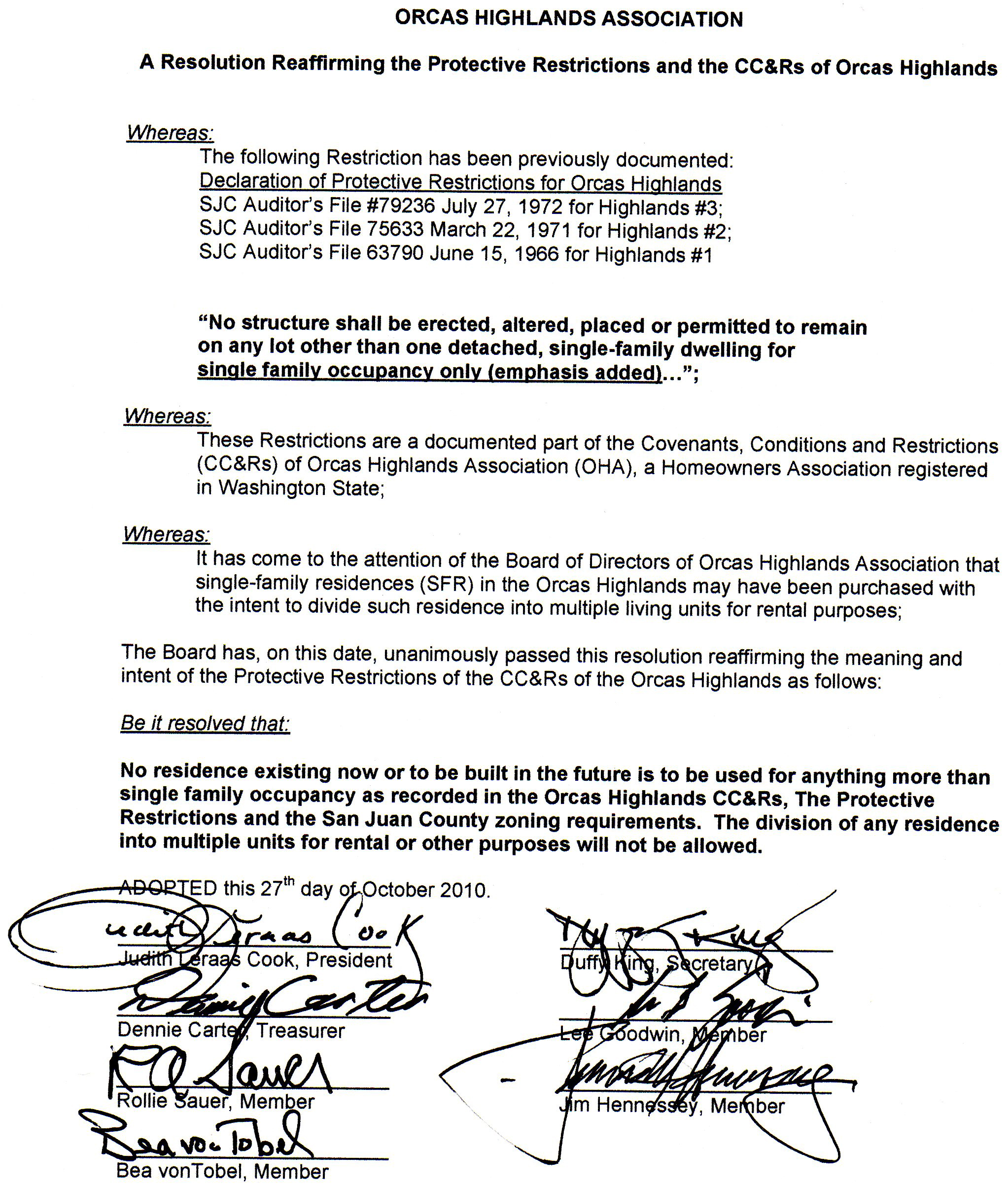 •Resolution Reaffirming Protection Restrictions and CC&R’s – October 27th 2010