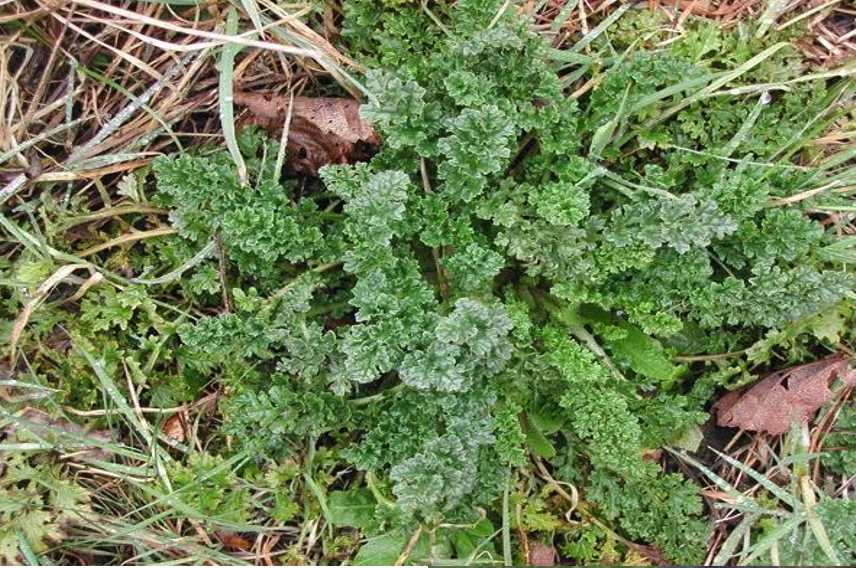 Leaves: twice divided, with leaf stems on leaves near base. Young leaves form a rounded base or rosette. Older leaves are alternate along the stem.