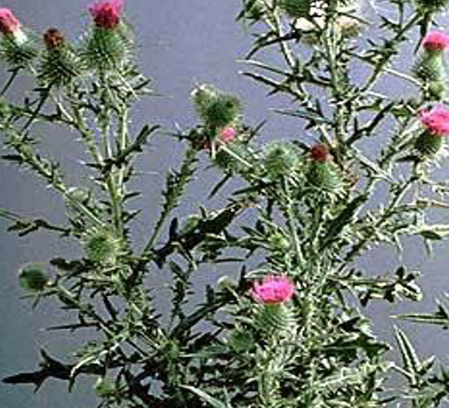 Bull thistle grows 3’ to 7’ tall with one upright branched stem. Young plants grow a rosette.